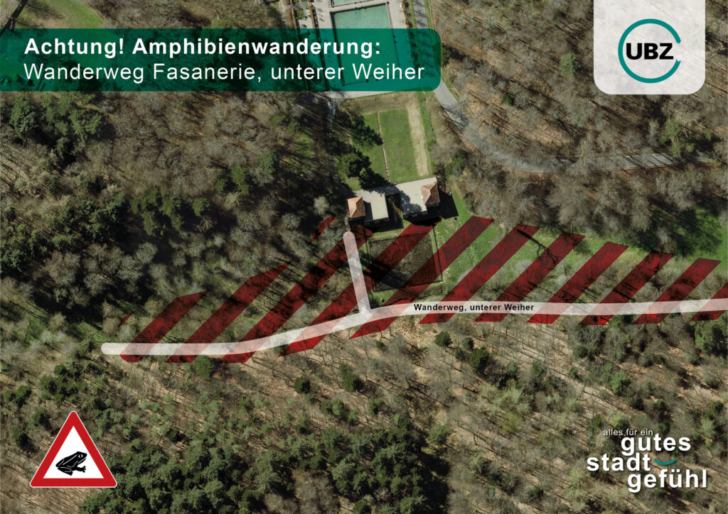 Im Bereich der Fasaneriestraße, insbesondere zwischen dem unteren Parkplatz und dem Wildrosengarten, ist in den kommenden Wochen mit wandernden Amphibien zu rechnen. Nach Auswertung der Beobachtungen aus den vergangenen Jahren ist dort aktuell nicht mit einer größeren Wanderbewegung zu rechnen. Aus diesem Grund wird in diesem Jahr kein Amphibienschutzzaun aufgestellt.